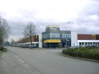 Opschriften op de kunststofgevels en hier en daar vlaggen zijn de enige reclame-uitingen.