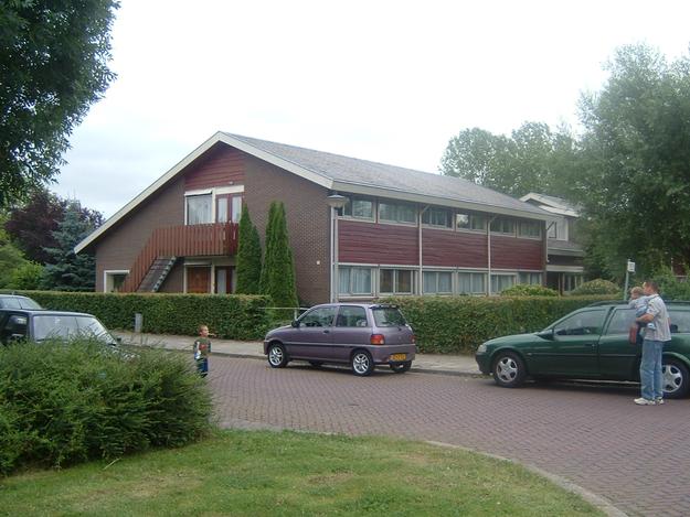 De geschakelde woningen hebben een eigen identiteit door het plaatsen van de kap loodrecht op de straat. Dit wordt versterkt door het schilderwerk van de houten delen in de gevel, die per (groep) woning een eigen kleur heeft. De entrees zijn voor de voorgevelrooilijn gesitueerd, met een langskap.