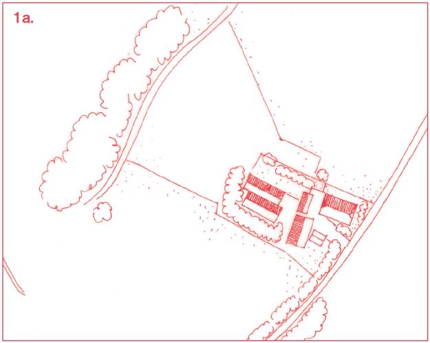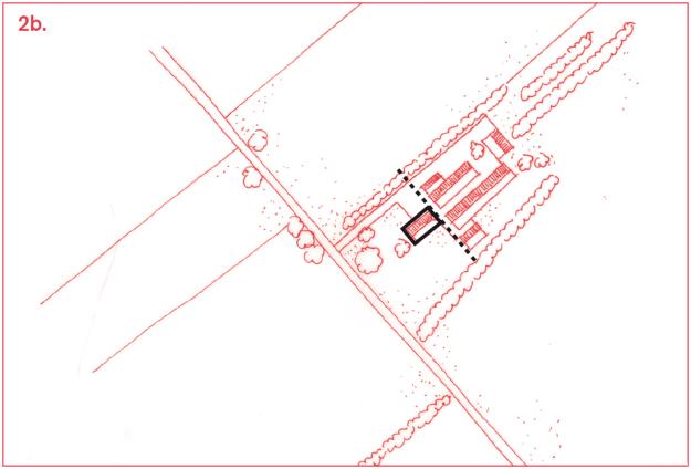 c. Ruilverkaveling: In de jaren zestig en zeventig zijn in de komgebieden veel nieuwe boerderijen gebouwd, vaak van een gestandaardiseerd type met een kop-hals-rompopzet. Deze erven kennen een planmatige en rationele opzet.