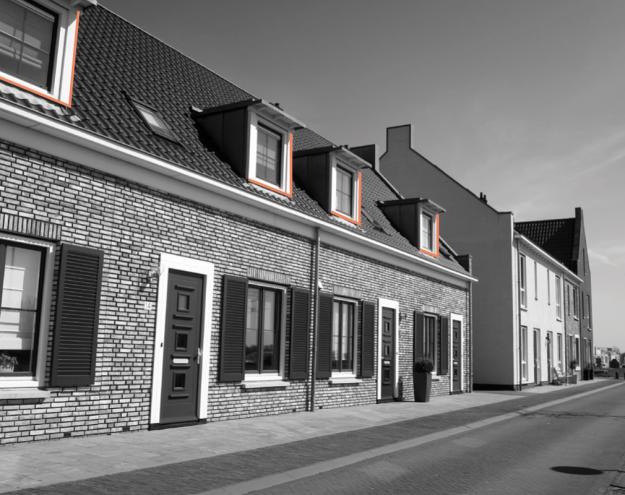 - breedte bij tussenwoningen: gelijk aan woningbreedte of tussen schoorstenen;