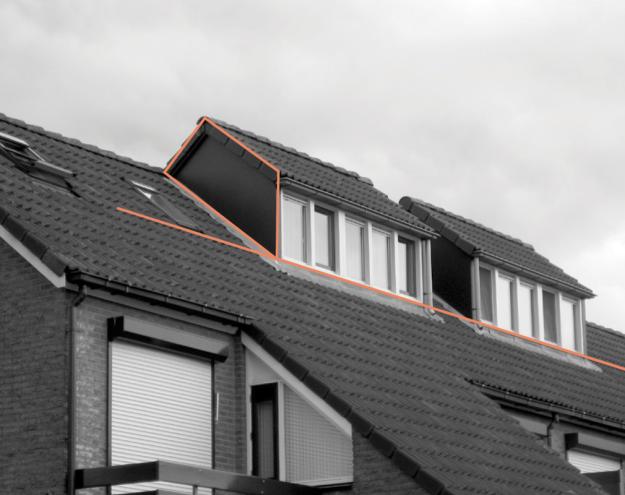 - de goot van de dakopbouw ligt onder de nok van de woning;