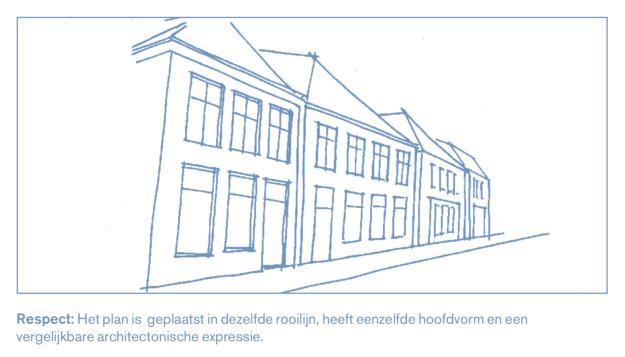 - Bouwmassa’s voegen zich binnen uitersten van de omgeving én nemen ook de beeldbepalende elementen over.