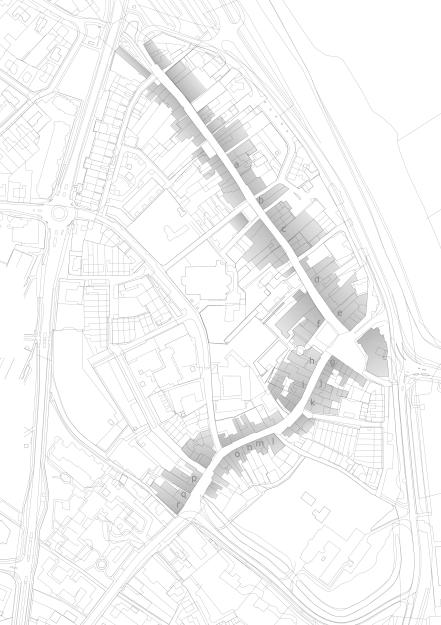 Het merendeel van de vooroorlogse historische bebouwing is tijdens de bombardementen van 1943 en 1944 verwoest. Het, in cultuurhistorisch opzicht, waardevolle historische nederzettingspatroon is door eeuwen echter nagenoeg onaangetast gebleven en vormt een belangrijke drager van de historische karakteristiek van Huissen. Het kleinschalige karakter van de bebouwing is steeds gehandhaafd en daarmee bleef de sfeer die kenmerkend is voor het historische deel bestaan. De bebouwing bestaat grotendeels uit wederopbouwpanden en enkele vooroorlogse panden. De historische begrenzingen zijn nog goed te herkennen in de Rijndijk (Stadsdam), de Stadswal, Achter de gracht en de Kloosterlaan (stadsgracht en burchtgracht) en de Walstraat en Doelenstraat (stadsmuur). Kenmerkend voor het gebied zijn de drie grote gebouwen: de kerk, het voormalig klooster en het voormalige scholencomplex aan de Langekerkstraat. Deze grootschalige bebouwing die gesitueerd is in een veelal ommuurde groene ruimte vormt een tegenhanger van de veelal kleinschalige centrumbebouwing aan de Langestraat en Vierakkerstraat. Mocht in de toekomst besloten worden om één of meerdere van deze gebouwencomplexen of gedeelten van deze complexen te amoveren en de vrijkomende terreinen te her-ontwikkelen, dan dient het basisconcept van ‘grote gebouwencomplexen’, voorzien van ommuurde groene terreinen, behouden te blijven. Het is gewenst om de samenhang tussen deze drie gebouwenclusters te versterken door een herinrichting van het openbare gebied. Bij deze herinrichting kan dan de smalle verbinding tussen de Doelenstraat en de Langekerkstraat worden verruimd en ontstaat weer een goede verbinding tussen beide straten. Het voormalige klooster/gemeentehuis heeft een nieuwe functie gekregen. De inrichting van de directe omgeving van het complex dient hierbij nog wel te worden meegenomen en in relatie te worden gebracht met de openbare ruimte rondom de locatie van het vm. schoolcomplex, de pastorie en de kerk.