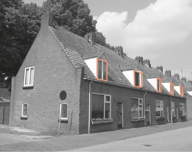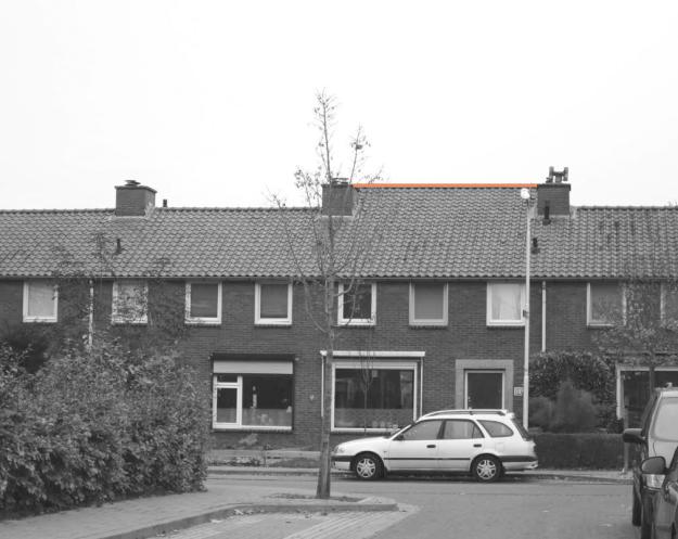 - breedte bij tussenwoningen: gelijk aan woningbreedte of tussen schoorstenen;