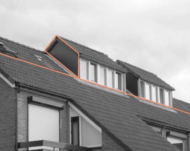 - de goot van de dakopbouw ligt onder de nok van de woning;
