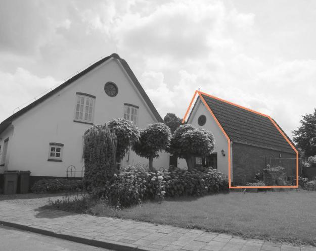 - duidelijk teruggelegen ten opzichte van de voorgevelrooilijn van de hoofdbouw.