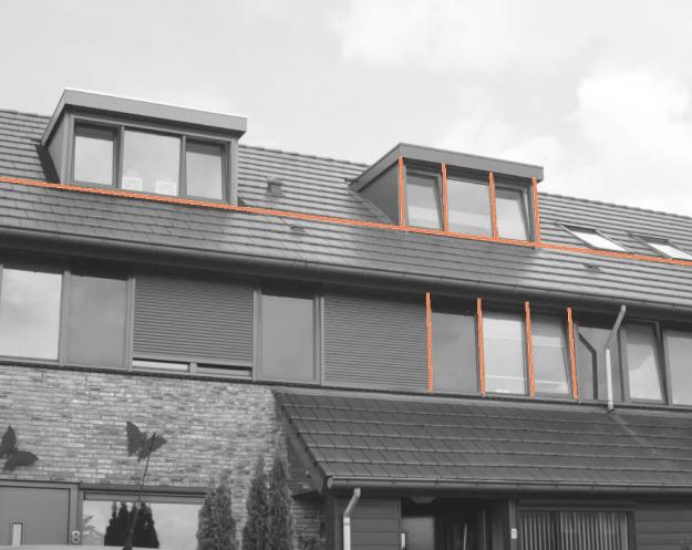 - breedte bij tussenwoningen: gelijk aan woningbreedte of tussen schoorstenen;