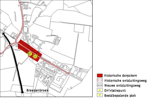 Breedenbroek is ontstaan uit verdichte lintbebouwing aan twee haaks op elkaar staande wegen. De historische kern van Breedenbroek ligt aan een van deze wegen, een rechte en brede oude weg. Het karakter van deze weg wordt bepaald door een groot aantal garagebedrijven en het relatief kleine aantal oude huizen. Ook de asfaltverharding met de rode fietspaden doet niet meer denken aan een historisch bebouwingslint. Alleen de kerk en omringende gebouwen hebben als beeldbepalende plek een historische waarde. Het beeld van het lint is vrij open. Er zijn veel huizen met weinig gedetailleerde gevels uit de jaren vijftig in het lint opgenomen. Het openbaar groen bestaat uit straatbomen aan weerszijden van de straat. Ten zuiden van het bebouwingslint ligt een woongebied dat gedeeltelijk bestaat uit dezelfde typen woningen aan een rechte straat en gedeeltelijk uit meer geknikte straten met meer variatie in de architectuur van de woningen. Ten noorden van het bebouwingslint is een nieuwe wijk gebouwd met een gevarieerd dorps karakter. De wijk heeft een groen karakter, voornamelijk door de tuinen, sommige straten hebben ook straatbomen.