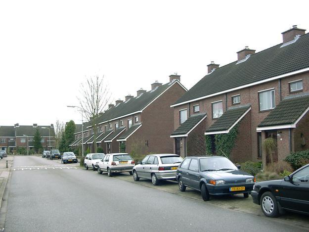 Aan de rand bevinden zich grote twee-onder-een-kap woningen van dezelfde architectuur, maar vaak met een eigen kleurstelling.