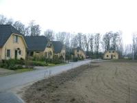Waar vroeger het zwembad met atletiekbaan was zijn recreatiewoningen gebouwd.
