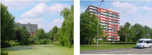 De hoogbouwcomplexen zijn voornamelijk gegroepeerd in een drietal zones langs de doorgaande wegen in Velp-Zuid. De complexen bestaan steeds uit een reeks van gelijke hoog- bouwelementen, gesitueerd in een parkachtige omgeving. De hoogte van de bebouwing, ontsloten via de Broekstraat en de Aalscholversingel, bedraagt twaalf à veertien lagen.