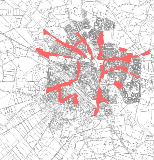 In en rondom historische kernen heeft in de loop der tijd een verdichting van de bebouwing plaatsgevonden. Omdat deze verdichting een langere periode besloeg, zijn uiteenlopende stedenbouwkundige en architectonische principes toegepast. Het resultaat daarvan is een gevarieerd bebouwingsbeeld met een rafelige stedenbouwkundige structuur.