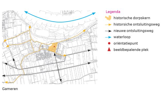 Het historische karakter van de oude kern van Gameren is in belangrijke mate bewaard en herkenbaar gebleven. De oudste bebouwing concentreerde zich op de oeverwal, die zich globaal beschouwd uitstrekte langs de Nieuwstraat-Ridderstraat-Ouwelsestraat. De Grote Del met de daaromheen gelegen bebouwing en gedeelten van de Ridderstraat, Waaldijk en Beemstraat met de daaraan staande bebouwing zijn aangewezen als gemeentelijk beschermd dorpsgezicht. De oude kern heeft nog een zeer aantrekkelijke dorpse sfeer dankzij de relatief open structuur met daarbinnen vele historische dorpspanden, waaronder fabrikantenvilla’s, boerderijen, dijkwoningen, een school en een kerk.