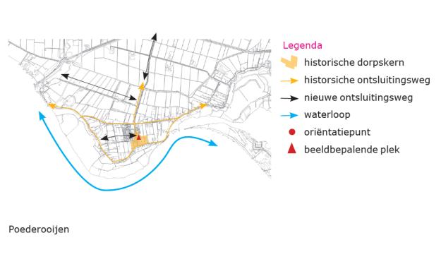Poederoijen is een typisch dijkdorp met de Maasdijk als historische bebouwingsas. De meest vrijstaande huizen zijn divers en worden afgewisseld door enkele winkels en kleine bedrijven. De meeste gebouwen staan met de rooilijn aan de straat, die geen trottoir heeft. Tussen de huizen door is het landschap te ervaren. De kerk is een belangrijke plek in het kleine dorp. Hij wordt omgeven door hagen en bloemen. Ten noorden van de dijk zijn twee kleine woonwijken gerealiseerd met een gevarieerd dorps karakter. In de omgeving van de sluis, aan het einde van de Maasdijk, bevindt zich een kleine concentratie van boerderijen.