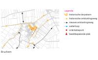 Bruchem is ontstaan op een stroomrug van de Rijn. De Dorpsstraat vormt het oudste deel; de Peperstraat en de Molenstraat waren de uitvalswegen waar vaak, op terpen, boerderijen gevestigd waren. Vooral aan de Peperstraat geven deze grote, oude boerderijen op terpen, met boomgaarden, ook nu nog een karakteristiek beeld. Samen met de groene ruime percelen geven de boerderijen het lint een rustiek, typisch dorpskarakter. Het dorpscentrum is erg sfeervol met het karakteristieke witte kerkje, het landgoed Groenhoven en de dorpsschool, alle in een groene omgeving. De meeste bebouwing is op enige afstand van elkaar en van de openbare weg gesitueerd, waardoor vrijwel heel Bruchem een groene uitstraling heeft. De woningen staan wisselend geordend op de kavel, niet allemaal op gelijke afstand van de weg en niet in dezelfde rooilijn. Naarmate men verder uit de oude kern verwijderd is, komen meer twee-onder-één-kap- woningen voor. Aan de rand van de bebouwde kom, langs de Hoogveldweg en de Burge, ligt een cluster van oude woningen met dezelfde hoofdopzet en in dezelfde architectuur. Het cluster is waardevol doordat de karakteristieken van de woningen goed bewaard zijn gebleven. Bruchem heeft twee uitbreidingswijken. De zuidelijke uitbreiding, de Vogelbuurt, is met zijn eenvormige rijtjeswoningen kenmerkend voor de jaren ’60 van de twintigste eeuw. De Annekeshof, aan de zuidwest zijde heeft het wat dorpse karakter van wijken uit de jaren ’70 en ’80.