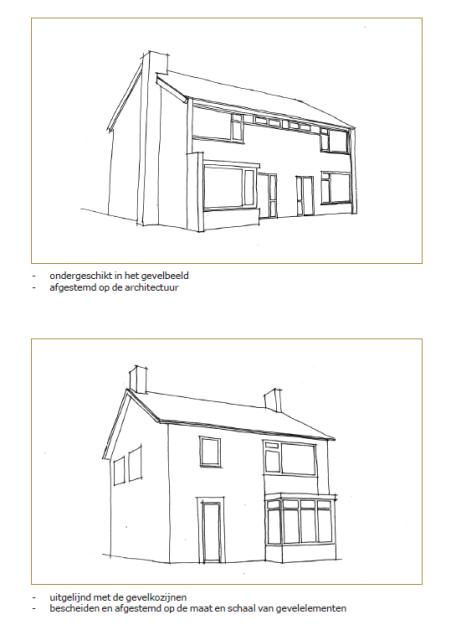 - richtlijn breedte: maximaal 50% van de breedte van de voorgevel tot een maximum van 3 meter