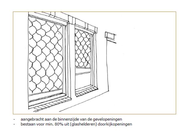 - mogen alleen aan de binnenzijde van de gevelopeningen worden aangebracht