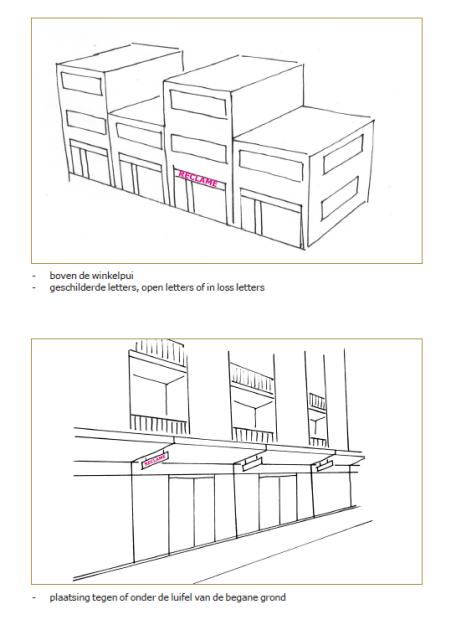 - maximaal 2 reclame-uitingen per gevel zijn toegelaten