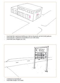 - maximaal één naamsvermelding per club op de gevels van het (club) gebouw. Aanlichten is toegestaan
