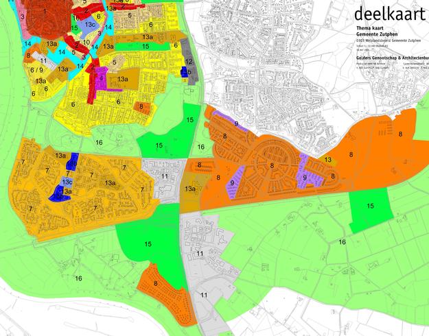 In de ontwikkelingsvisie 2020 is de gemeente Zutphen opgesplitst in een aantal deelgebieden, gebaseerd op de wijken. Hoofdstuk 3 van deze nota geeft een summiere beschrijving van de thema's die aanwezig zijn in de gemeente. Voor de uitwerking van de welstandscriteria zijn enkele thema's opgesplitst in een verdere verdeling. Tevens wordt in datzelfde hoofdstuk gedetailleerder ingegaan op de ruimtelijke karakteristiek en worden de welstandsniveaus nauwkeuriger vastgelegd. Per thema worden in hoofdstuk 4 gebiedsgerichte welstandscriteria opgesteld.