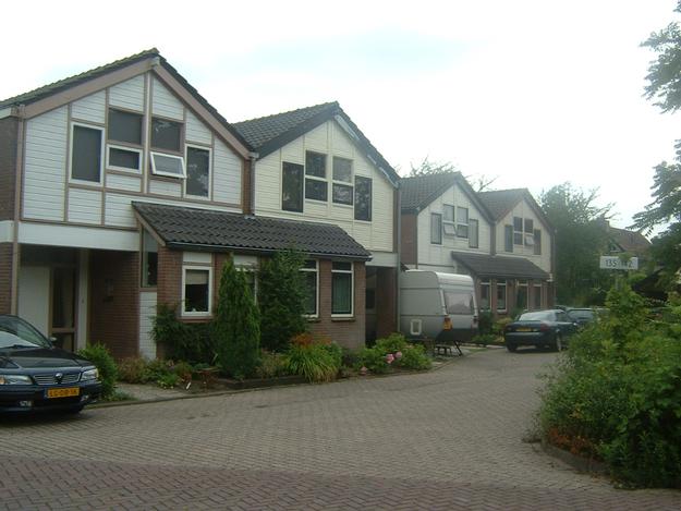 De geschakelde woningen hebben een eigen identiteit door het plaatsen van de kap loodrecht op de straat. Dit wordt versterkt door het schilderwerk van de houten delen in de gevel, die per (groep) woning een eigen kleur heeft. De entrees zijn voor de voorgevelrooilijn gesitueerd, met een langskap.