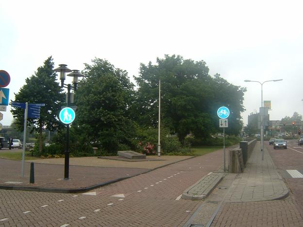 Deze strook is ingevuld met verschillende functies, zoals een restaurant gelegen nabij de spoorbrug, gedenktekens in een groene omgeving, parkachtige ruimten en veel open, functionele (verkeers) ruimten.